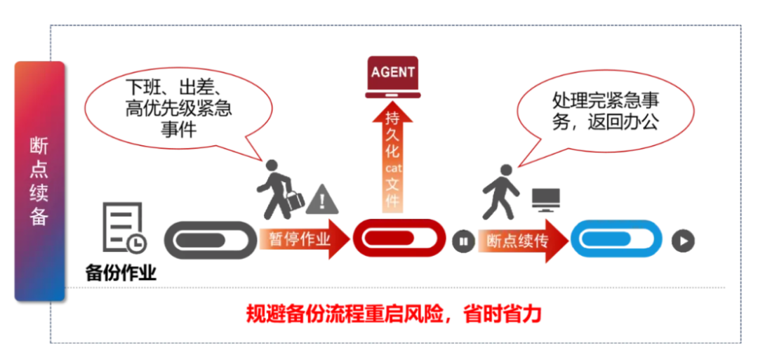 允許用戶在個人數據備份過程中隨時暫停備份任務,并支持從上次中斷處繼續備份作業,直至完成剩余部分。這一功能有效提升了備份效率,規避了因緊急要務導致備份作業重啟的難題,為用戶提供了一種更加靈活、高效的備份解決方案。